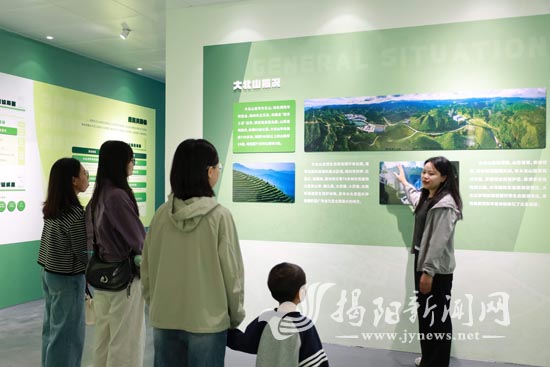 揭西县大北山绿美展览馆以“绿美揭西”为核心主题,设计融合自然肌理与现代科技,打造沉浸式展示空间(见上图。通讯员 摄)。馆内设置地形沙盘、荣誉展示区、动植物标本区等,通过图文、影像、互动设备等多元形式,全方位呈现揭西生态建设成果与大北山丰富的生物多样性,空间布局精巧,展陈形式直观。